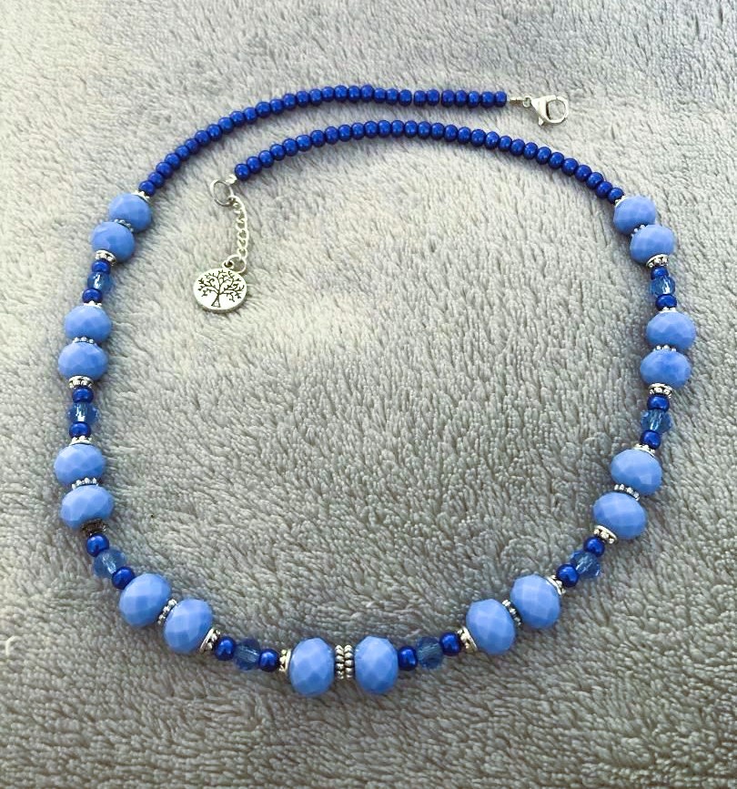 Light Blue Glass With Bead Caps And Dark Blue Small Pearl Seed Beads
