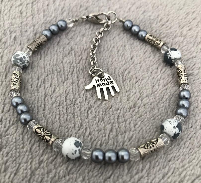 Mottled Grey With Clear Crystals And Small Dark Pearls